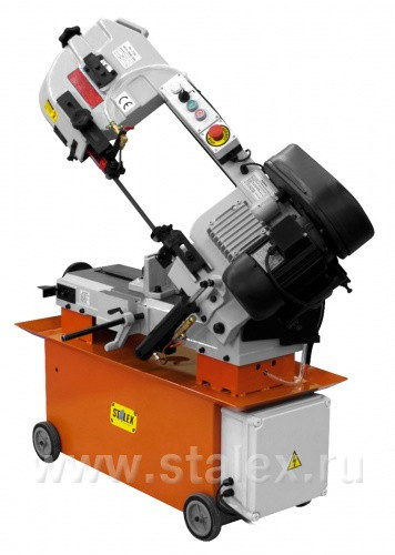 Стандартная модель мобильного ленточнопильного станка, разработана для резки черных металлов и других материалов с целиковым, полым или профильным сечением. Станок позволяет делать распилы заготовок диаметром до 180 мм в полуавтоматическом режиме с ручным возвратом пильной рамы в первоначальное положение. Пила опускается под собственным весом. Cтанок оборудован дросселируемым гидравлическим цилиндрами подач, который позволяет автоматически подстраивать скорость опускания пильной рамы в зависимости от профиля заготовки, что обеспечивает оптимальные режимы распила. Станкам не требуется подключение к источнику сжатого воздуха.